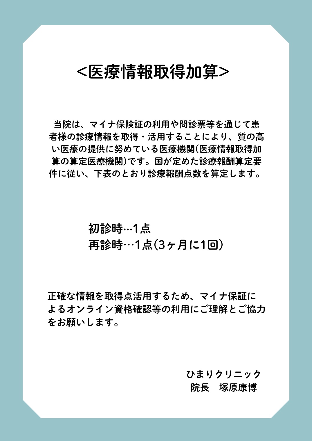 厚生省ガイドラインに沿い、院内掲示内容表示しています(保険診療)。
